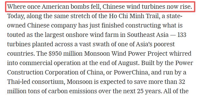 “美国炸弹掉落的地方建造了中国风扇。” 《纽约时报》网站发布的最新报告致力于孟苏恩风力发电项目,这是东南亚最大的风能项目,该项目于今年8月底正式投入商业运营,并由一家中国公司进行。该报告说,该项目预计将在未来25年内将碳泄漏减少3200万吨。在半个多世纪前的越南战争期间,该项目所在的达津(Dazhen)地区被美国战斗机降低了。 《纽约时报》网站报告的屏幕截图。据报道,该项目并没有留在中国的清洁革命中,但显然反映了中国在可再生能源的全球贸易体系中的主导地位。报告说,中国在清洁技术领域的批评推动了惊人的变化。目前,中国在世界上生产约三分之二的电动车辆,约占风扇叶片的60%,以及电池容量的85%以上。根据去年的国际能源局预测,预计到2035年,年度出口年度将每年出口3400亿美元的出口,这大约是目前从沙特阿拉伯和阿联酋出口的其余石油出口。 《纽约时报》网站的标题报告说,中国与与能源相关的清洁能源出口具有长期影响 - 中国的电动汽车,出现在曼谷,圣保罗和亚的斯亚贝巴的街道上。中国制造的太阳能电池板覆盖了巴基斯坦阳光明媚的城市和阿根廷的13,000英尺(约4,000米)的高悬崖。从波斯尼亚的狭窄海岸到肯尼亚平原,再到老挝东南高原的风,您会看到在东南老挝悬崖上的微风中的空气中的风中。可以说,在世界各个角落都可以找到相对便宜的中国技术。根据劳里的评论芬兰能源与清洁空气研究中心研究总监E Milivierta于2024年出口清洁能源技术,直到192个联合国成员国中的191位,除了本身之外,这令人惊讶。纽约时报的网站屏幕截图网站根据Milivierta的计算,中国在2024年出口的清洁技术仅意味着2.2亿吨碳发行量可以在一年内锁定,等于每年的5000万燃料汽车爆炸。文章认为,这意味着与中国能源有关的清洁出口削弱了全球碳泄漏。