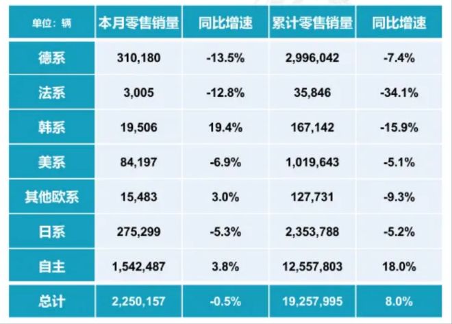 中国乘用车联席会的数据清晰地显示了合资车的可怜处境。在国内市场,曾经风靡一时的合资车如今“举步维艰”。相信网上还是有大量的合资车爱好者,但从今年的销量来看,目前合资车的现状是:没人买!或者说买的人越来越少。 11月份,市场销售汽车225万辆。截至11月底,今年乘用车累计销售1925万辆。其中,销量最大的是依然拥有的品牌,最差的是法系车。按车系销量排名(结合1-11月数据),应该是:Top1,自主品牌1255万辆,同比增长18%。 Top2德国品牌销量299万辆,同比下降7.4%。 Top3中,日系品牌销量235万辆,同比下降5.2%。 Top4,美国品牌销量102万辆,同比下降5.1%。前五名中,韩系车销量16.7万辆,同比下降15.9%。其他欧洲系列赛Top6,12.7万,同比下降9.3%。 Top7中,法国品牌销量3.5万辆,同比下降34.1%。从绝对销量数据来看,目前仍具有市场吸引力的车系只有自主、日系、德系和美系车型。这里值得一提的是,特斯拉贡献了美国汽车销量的一半,这是相当特殊的。被认为是互联网上最好的韩国汽车的pinagfather今年的综合销量为167,000辆。不仅销量极其惨淡,最重要的是,下滑的趋势还没有停止,下滑幅度约为16%。用“死而不坚”来形容韩系车并不为过。法国汽车也陷入困境。也可以说是没有办法。今年累计销量不足36,000辆。即便如此,销量依然火爆!高达34%。不仅做到了它的销量最少,但销量也有所下降。所以,形容法系车的四个字应该是“坚韧而不死”。这两个车系在网上都很受欢迎,也不乏认可它们的用户群体。但在实际消费情况下,几乎没有人选择它们。为什么?法韩车的品质是毋庸置疑的。法系车的操控性和安全性确实很受欢迎。欧洲市场的销量表明法系车的实力是实实在在的。韩国车产品质量稳定、稳定。从工具特性来看,韩系车的质量仅次于日系车,这就增加了工具车的成本。但!为什么不买呢?主要原因是新产品缺乏吸引力,如智能、电动、自动化产品。相比自主品牌,韩系车在某种意义上缺乏真正的说服力。此外,韩系车、法系车的经销商布局也呈现出一股“退网”之势,他们的渠道销售和终端掠夺能力都不如其他品牌。这导致了市场终端销售动力不足。最关键的是,科技中国品牌的崛起给用户带来了更好的选择。同样的价格,国产车尺寸更大、配置更好、更舒适、技术更先进、动力更强劲。在与合资车的竞争过程中,国产品牌的知名度明显上升。当然,法系车和韩系车面临的挑战是车不是国产车,国产车只是跟风。窃取法国和韩国汽车的直接竞争对手是来自samempo的德国和日本玩家。例如,丰田、本田在面对韩系车时,在品牌、技术、质量、渠道等方面都具有绝对优势。而当面对这些优点时作为大众品牌,法系车如何避免大众的封锁?如今的合资冒险车价格非常低。比如12万元就可以买到天籁(参数|照片)和君威。同价位有多少人能想到标致508L?即使产品再好,也是大众缺失的,而不是小众群体的选择。卡罗拉、宝来、雷凌等车型的终端售价都在8万左右,那么7万多的伊兰特、起亚K3能有多少人高兴呢?由经销商销售汽车实际上是最后一步。接下来,他们还要与halabrand的知名度、渠道、产品定价、市场认可度等进行较量,大鱼吃小鱼的戏从来没有停止过。因此,与其说国产车击败了法系、韩系车,不如说大众、丰田在这一追求上超越了韩系、法系车。国产汽车也纷纷效仿,利用智能化优势e、电气化、高效化进入历史舞台。总之,如果你想在当今市场上销售汽车并提高销量,你不能只关注技术或全球市场。你还必须有实力和信心,你的对手更大。
