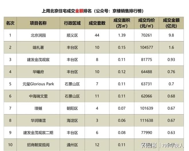 今天聊一下市场。昨天,有机构发布了12月第一周的交易情况。上周,北京新房销售492套,环比下降12.14%;成交面积6.95万平方米,环比下降5.05%;成交均价5.7元/平方米,环比下降7.18%;成交金额39.6亿元,环比下降11.90%。从排名来看,北京润园 北京润园以44套、1.39万平方米、网络签约9.8亿,成为北京新房市场套数、面积、成交金额三冠王。北京润源此前海报显示,开盘价约为35亿元。据说很多明星和阿里都去赶集。北京润源一个项目周总成交额9.8亿元人民币,价值近四分之一北京39.6亿元人民币。在北京这个冰冷的市场里,这样的成绩尤其值得肯定。北京润源的成绩也算是给这个寒冷的冬天增添了一点火花。我会继续关注在线数据签名。应该不会太糟糕。另一个伟大的项目是端里坐,它首先在丰台开业。一次在线签署 10 个单位。项目成交均价10.45W/m²。单台售价约为1600万元至1900万元。交易面积约150平米,四房两厅。交易总价值1.6亿。经查,端丽珠是2022年上半年入市的项目,目前尚未流动,库存还有24套。不过也有朋友表示,可能此时10套是集中线上签售,不会影响目前的大势。值得一提的是,这个专业版ject也在去年12月进行了网上签约,成交12套,成交总金额1.71亿元。此外,二环路沿线首次开业的建国门9号线已于上周领证。有消息称本周将开业。未来我们将继续审视网签情况。有朋友算了一下物业费,发现是24.68元/平方米,最小户型面积是270平方米。他向我提到:“他一年的湾地产广告比他的房租还多。”这里简单介绍一下普通的房子。其中,大兴西岳星城、房山新城头御河园为首批项目。两个项目的单位数量也比较少,一个有20个单位,另一个有24个单位。不过,新城头御和园的网上签约价格非常高。这里有24套网上签名,这是一个阶段的。网上签约平均价格为1.60,000。作为佛该项目中,前期网签的部分是30岁出头的二手房,上周北京二手房成交2948套,环比下降29.08%;成交面积27.29万平方米,环比下降26.86%。截至12月7日,12月份北京共销售第二套住房2948套。周成交量为2,948套,创近八周新低,也是近八周以来首次跌破3,000套大关。多于。