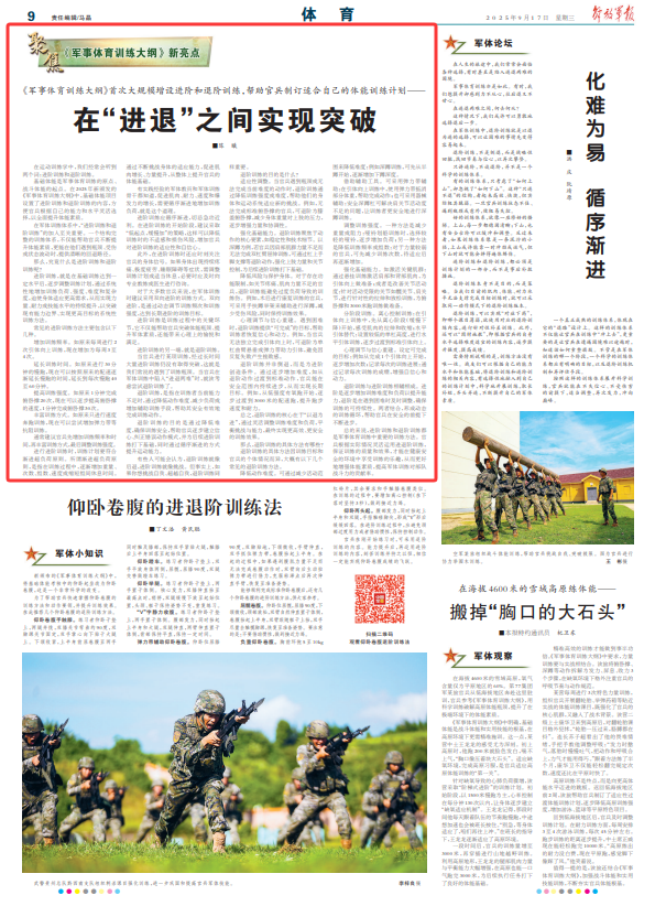 “军事训练框架”将高级和务虚训练增加了大规模,以帮助官员和士兵制定适合他们的身体训练计划,以取得“进步和撤退”之间的成功。 ■在体育训练中,我们经常听到两个单词:高级训练和向后训练。主要的身体健康是军事运动训练和战斗身体健康的起点的来源。在2025年新发行的“军事运动训练大纲”中,主要的身体健身项目设置了用于高级训练和较低培训水平的内容,以便官员和士兵可以根据其能力和水平进行灵活的选择,以综合次数改善他们的身体健康。在军事训练系统中,增加“高级训练和较低训练”很重要。完整的培训系统不仅可以帮助官员和士兵继续改善其身体健身,但在遇到瓶颈,损害或状态变化时,还提供了清晰的撤退路径。那么,高级培训和较低的培训水平到底是什么?高级培训是一种系统的培训方法,在基本培训达到一定水平之后逐渐调整培训计划,并系统地增加训练,强度,难度和复杂性的负载,从而迫使身体适应更高的需求,从而实现力量的持续提高,Enduranceor技能水平,破坏现有能力并实现更高的目标。常见的高级培训方法主要包括在以下内容中。增加训练频率。如果您曾经每周两次进行上拉训练,现在每周增加到3至4次。扩大训练时间。如果您已经慢跑了30分钟,现在可以根据原始速度逐渐扩大慢跑时间,将其扩展到每个慢跑的40至60分钟。提高训练强度。我如果您用来完成每分钟20次俯卧撑,现在可以提高俯卧撑的速度,每分钟完成30次。丰富训练方法。如果您以前只进行了操作训练的速度,现在可以尝试增加电阻(例如弹性频段)中的打sc。通常建议官员和士兵首先增加训练和时间的频率,然后再丰富训练方法,最后调整训练的强度。进行高级培训时,培训计划必须遵守逐渐过剩的原则。所谓的逐渐过剩原理是指逐渐的体重,次数,组数量,速度或缩短训练期间剩余组的时间。通过继续挑战身体的灵活性,促进肌肉生长并提高力量,并改善整个官员和士兵的身体健康基础。军事运动教育者和米利具有实践经验的训练训练持续篮板知道促进肌肉生长,耐力,比利斯和爆炸能力需要逐渐增加加载训练。这就是原因。高级培训应采用步骤进行,并且不要渴望获得快速成功或即时收益。在高级培训开始时,建议采用“低起点,缓慢的添加”策略,这可以减少训练期间的不适和伤害风险,并提高官员和士兵在高级培训中的灵活性和信心。此外,在高级培训期间,您应始终注意官员和士兵的身体信号。如果身体患有持续的疾病,严重的疲劳,睡眠障碍等症状,则需要调整训练计划或进行适当的休息。如有必要,您应及时咨询专业教练或医生。对于大多数官员和士兵,建议使用ADOPT体育训练期间是双向高级训练方法。双向进步是通过排练训练的频率和训练强度,以实现长期的高级培训目标。高级培训是培训过程的关键链接。它不仅可以帮助官员和士兵打破身体上的瓶颈并改善其军事身体健康,而且还带来了心理满意和满足感。高级培训的另一端是向后练习。当军官和士兵进行特定的培训时,他们在长期的高级培训后仍未取得突破。这是他们最常见的说法,他们遇到了一系列训练。当军官和士兵在体育训练中处于“困难”时,他们应该考虑下来的努力。审查培训是指通过减少运动难度,减少负载或当培训师目前不足时,增加辅助培训方法。逐步训练的目的是减少贫困并确保安全培训,帮助官员和士兵逐渐发展信心,纠正错误的行动模式,并为随后的高级培训奠定基础,并通过逐步的程序提高运动员的能力。有些人可能会认为,降低的目标就像落后和进步的训练一样挑战。但是实际上,如果您想挑战自己并克服自己,那么培训培训同样重要。逐步培训的目的是什么?自适应调整。当军官和士兵遇到瓶颈或无法完成当前的艰难运动时,踩下训练可以帮助他们的身体和运动系统,通过减少训练的强度或困难来适应新的挑战。例如,无法完成通常的俯卧撑的官员和士兵May减少膝盖俯卧撑,通过体重减轻上脚的压力,并逐渐增强强度和协调性。增强基本能力。审查实践的重点是行动,稳定性和技术细节的基本要素。以蹲式为例,如果由于肩部肌肉的力量不足而无法完成杆臂和扩展训练的相似之处,他们可以通过诸如酒吧支撑和其他步骤等运动步骤来增强上脚强度并综合控制,从而为后续的高级训练奠定了基础。降低风险并保护身体。对于具有功能限制的官员和士兵,例如关节疼痛和肌肉力量不足,阶梯训练可以防止因过度负担造成的训练受伤。例如,手术后接受康复训练的官员和士兵可能会使用蹲式手动抬起来帮助下蹲,在维护时出现了受伤的风险NG培训结果。心理调节和重建信心。在遇到困难时,降低培训提供了“完成”目标,以帮助Trail恢复信任和动力。例如,当官员和士兵们无法独立完成上拉时,他们可以撤退到水平的杆臂悬挂或弹性带中,以帮助下拉以避免由于反复的失败而导致失败。审查培训不是回归,而是创造进步条件。通过逐渐增加贫困,例如从一步一步的行动转向标准行动,官员和士兵可以继续在安全范围内进步,从而实现长期使用。例如,从低强度有氧运动开始,以3000米的速度逐渐移动,以提高跑步速度和耐力。简而言之,通过灵活地调整训练和装载的难度,平衡挑战和CAPA的灵活性,逐步训练的核心是“撤退作为进步”能力,并最终取得更好,更安全的培训结果。那么,