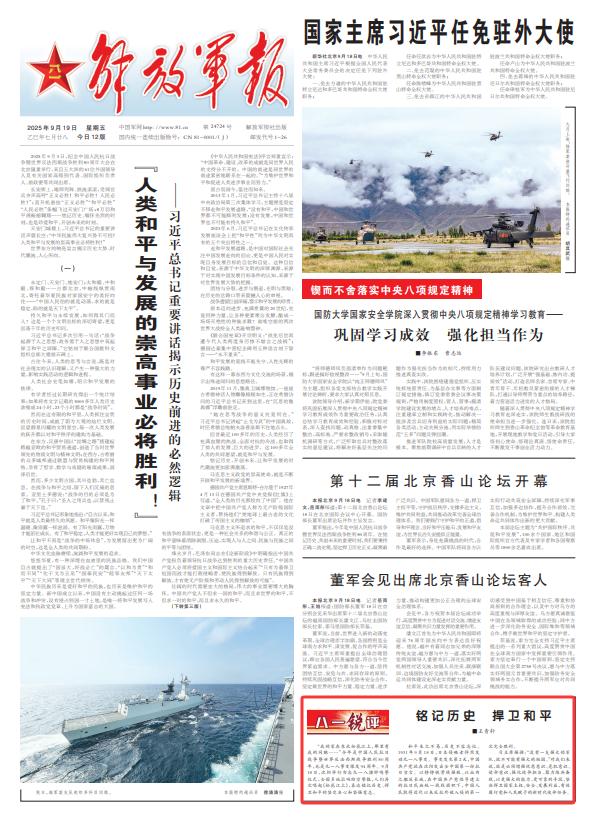 记住历史并捍卫和平■王Qingxuan“我的家在东北的Songhua河上,我的同胞……”今年是中国公民反对日本公民入侵和世界反菲斯主义战争的胜利80周年,以及9月18日的94周年。防风警报在全国许多地方都有声音。人们唱歌“在Songhua河上”,以表达他们坚定不移的决定,并强烈记住历史并捍卫和平。和平是困难的,历史将永远不会被遗忘。 1931年9月18日,日本入侵者于9月18日无情地发起了这一事件。事件发生的第二天,中国共产党在中国发行了第一份反日宣言。用铁和鲜血的熨斗和大城市的形成与强大的敌人作战。在反日国联合阵线的旗帜下,共产党P中国阿蒂,中国在现代反对外国袭击的斗争中取得了首次取得成功。习近平强调:“没有强大的军队,就无法拥有强大的祖国。”对我们来说,有必要增强我们的危机,危机和使命的感觉,增强我们的任务责任,专注于培训和准备,并确定具有更强技能和更可靠的手段的国家主权,安全和发展利益,并有效地履行党派和人民承诺和人民承诺和新手的人。